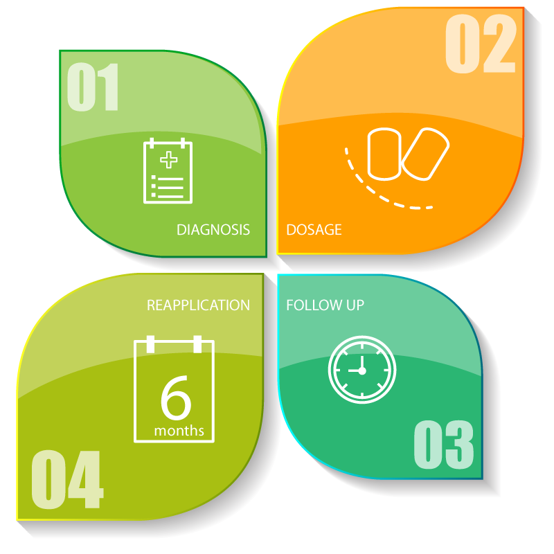 Depending on the metabolism of each patient, treatment reapplication would be needed around every 6 months.